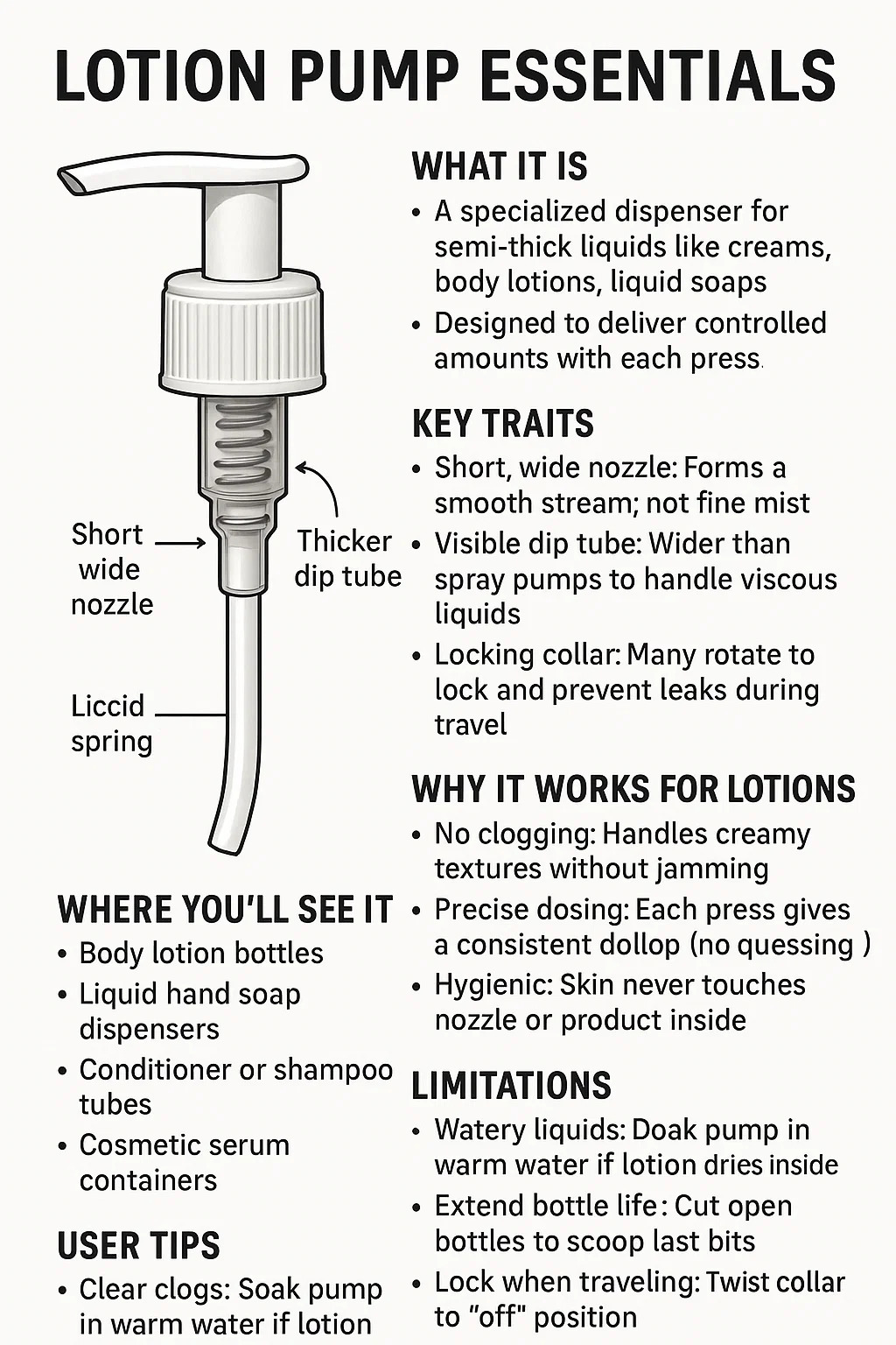 Eliminez les sabots : faites tremper la pompe dans de l'eau tiède si la lotion sèche à l'intérieur.