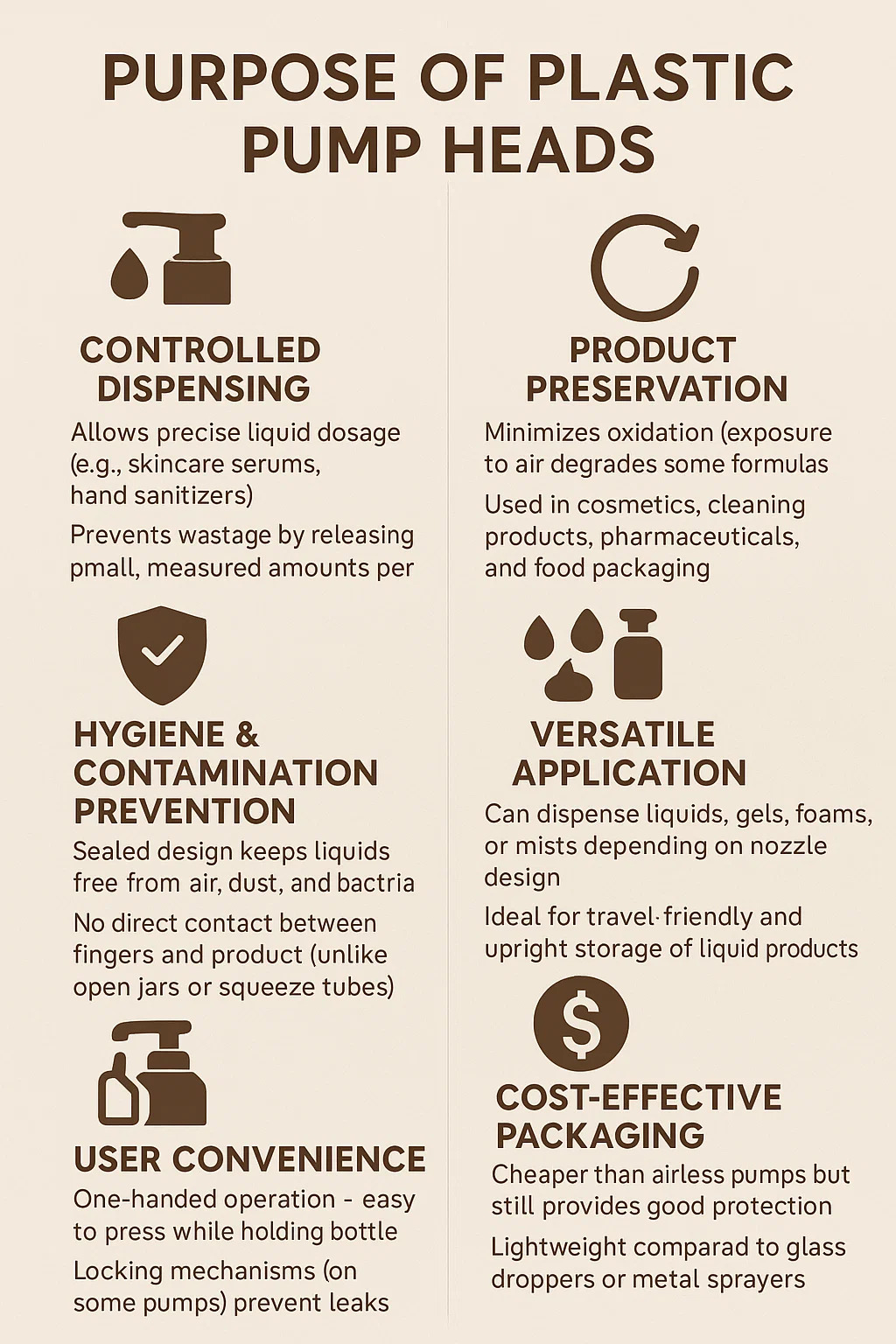 Permet une dose liquide précise (par exemple, les sérums de soins de la peau, les désinfectants pour les mains).